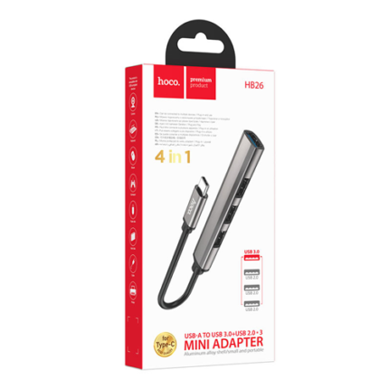 Hoco USB 4 in 1 Hub HB26 – Metal Gray