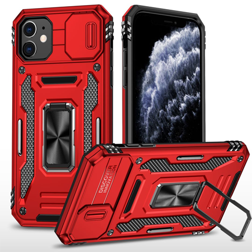 New Military Case with Ring Kickstand for Apple iPhone 12 / 12 Pro – Red