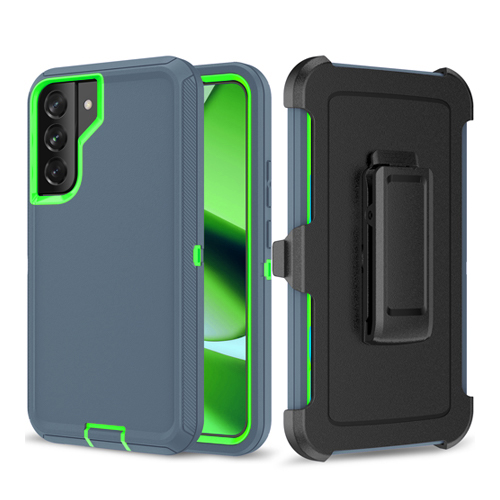 Triple Layer Protection Case & Belt Clip for Samsung Galaxy A24 – Navy Blue – Green Line