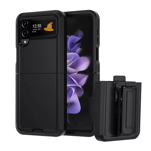 Triple Layer Protection Case & Belt Clip for Samsung Galaxy Z Flip 4 – Black
